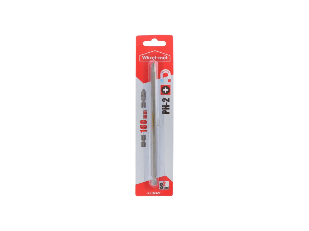 PH2 bit s dĺžkou 160 mm je určený na pohodlné a presné skrutkovanie. Vďaka odolnému prevedeniu sa spoľahlivo upína do držiakov a zaisťuje stabilnú prácu pri montážnych úlohách.