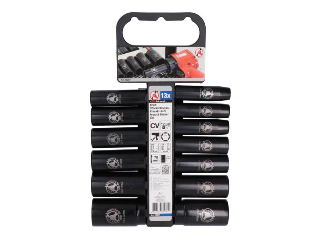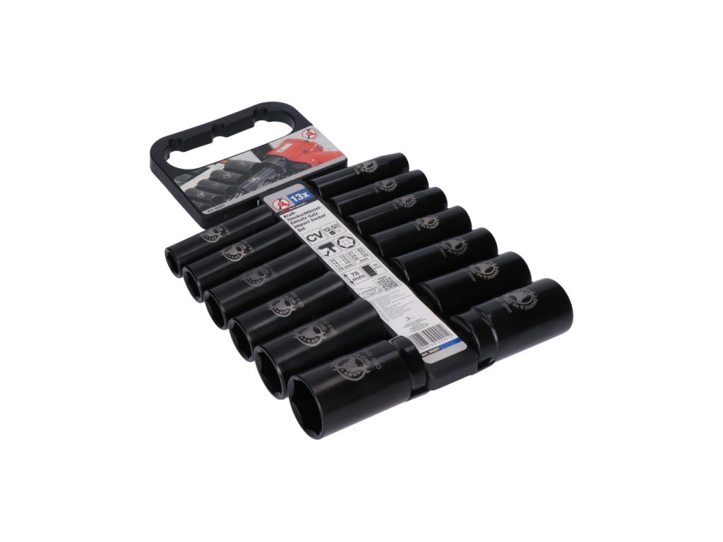 Táto sada nadstavcov pre rázové uťahováky s upínaním 1/2″ ponúka univerzálne použitie vďaka rozsahu veľkostí od 10 mm do 32 mm. Vyrobené z chróm-vanádiovej ocele, tieto nadstavce sú odolné a spoľahlivé pri opakovanom používaní.