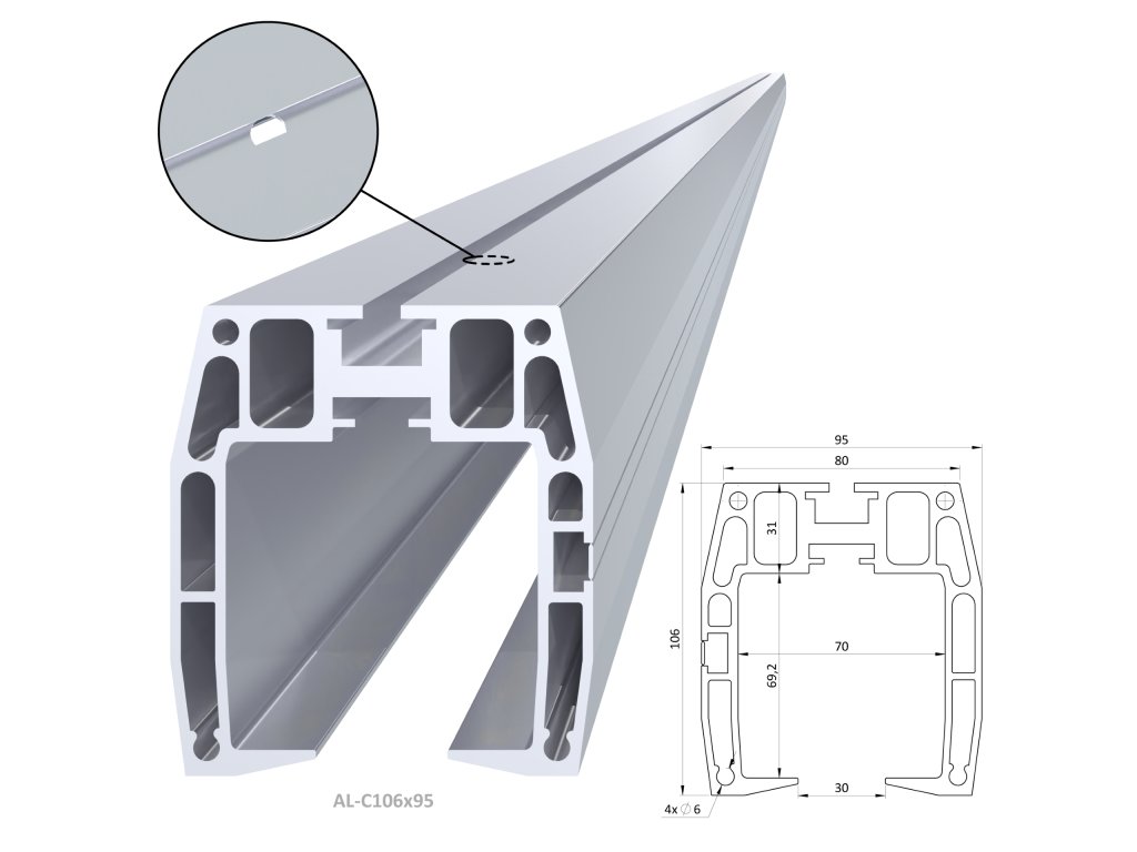 C profil 106 x 95 x 3000 mm, hliník bez povrchovej úpravy