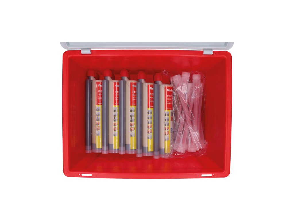 Praktický montážny box Fischer HWK obsahujúci 12 x chemickú maltu Fischer FIS V Plus 360 + pištoľ grátis