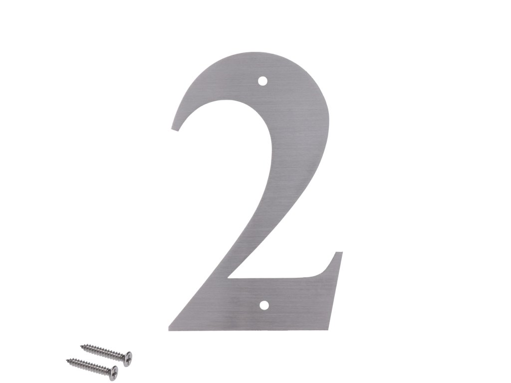 Číslo domové 2, (127x1.5mm), s dierami, brúsená nerez K320 / AISI 304