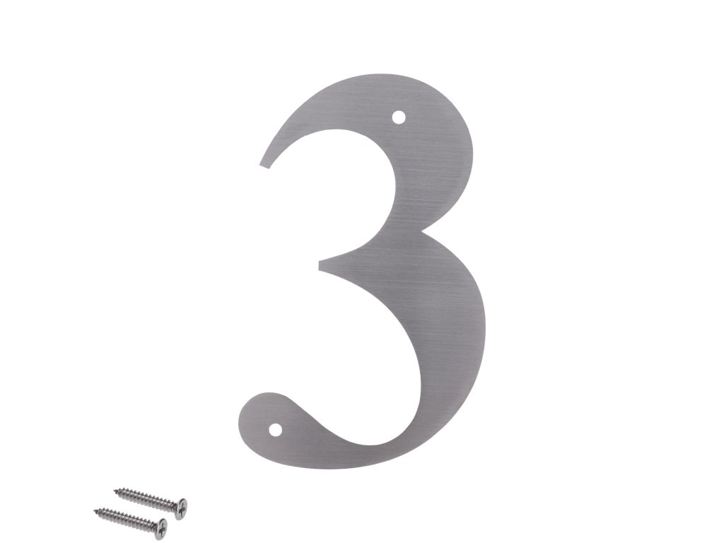 Číslo domové 3, (127x1.5mm), s dierami, brúsená nerez K320 / AISI 304