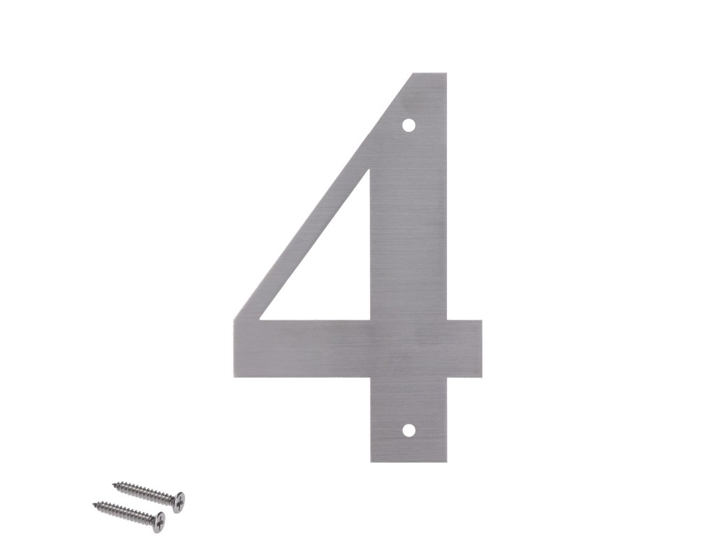 Číslo domové 4, (127x1.5mm), s dierami, brúsená nerez K320 / AISI 304