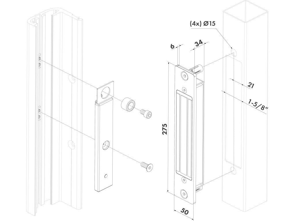 Prídržný elektromagnet s garantovanou prídržnou silou minimálne 2500N. Prídržná sila je testovaná na každom elektromagnetickom zámku. Pre ľahké otváranie, elektromagnetický zámok je vybavený systémom pre odstránenie zvyškového magnetizmu.Určený je pre použitie s dorazovými lištami LOCINOX® N LINE B MAG a LOCINOX® N LINE S MAG.