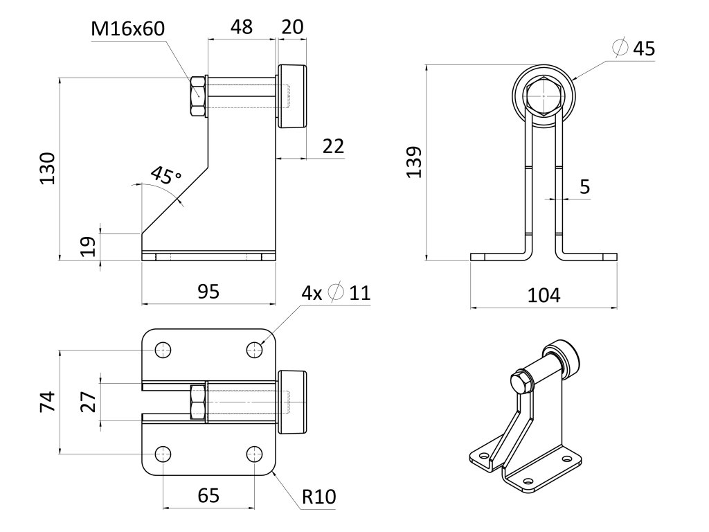 nastaviteľný doraz na posuvnú bránu, pozinkovaný