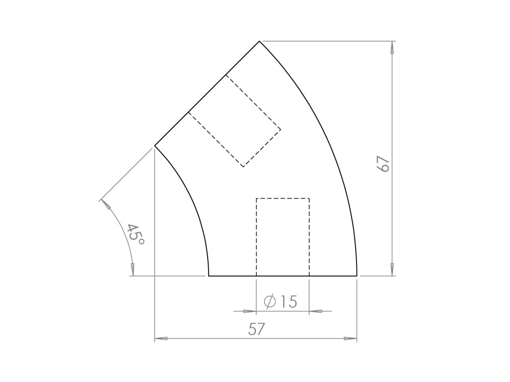 drevený spojovací oblúk (ø 42mm /45°), materiál: buk, brúsený povrch bez náteru