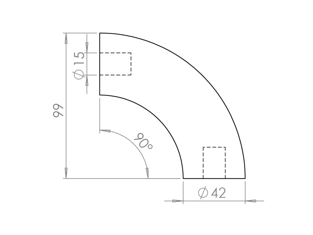 drevený spojovací oblúk (ø 42mm /90°), materiál: buk, brúsený povrch bez náteru