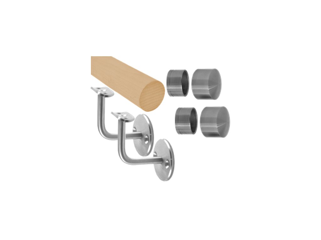 madlo drevené (1250mm), materiál: buk, brúsený povrch bez náteru, set: 2 ks úchyt, madlo s nerezovým ukončením