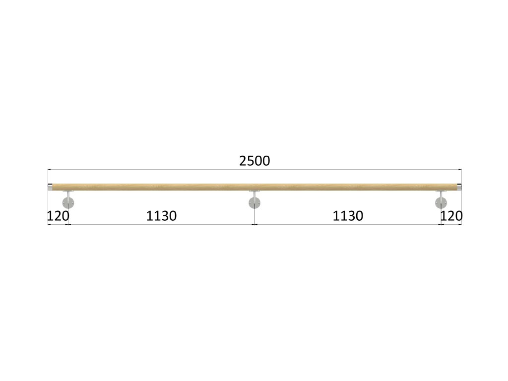 madlo drevené (2500mm), materiál: buk, brúsený povrch s náterom BORI (bezfarebný), set: 3 ks úchyt, madlo s nerezovým ukončenímDodatočné parametre