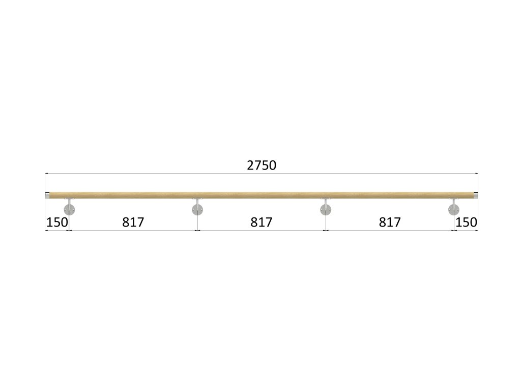 madlo drevené (2750mm), materiál: buk, brúsený povrch bez náteru, set: 4 ks úchyt, madlo s nerezovým ukončenímDodatočné parametre