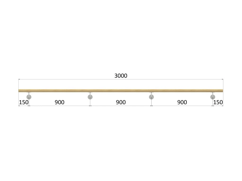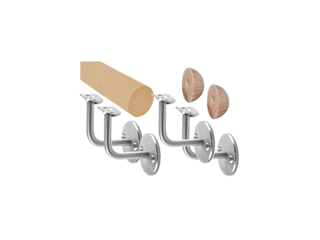 madlo drevené (3000mm), materiál: buk, brúsený povrch bez náteru, set: 4 ks úchyt, madlo s ukončenímDodatočné parametre
