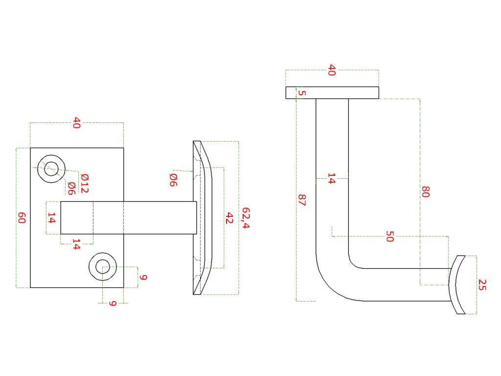 držiak madla na stenu s obdĺžnikovou kotviacou doskou - 70x40mm (pevný, na trubku ø 42,4mm), odsadenie 70 mm, oceľ bez povrchovej úpravy