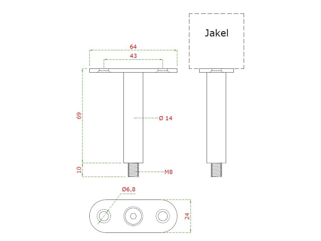 Držiak madla pevný, plochý (69x64 mm) závit M8, brúsená nerez K320 /AISI304