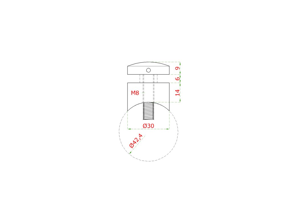 držiak (ø 30mm), k bočnému kotveniu skla EB1-0185 /EB1-0183, na trubku ø 42.4mm, brúsená nerez K320 /AISI304Dodatočné parametre