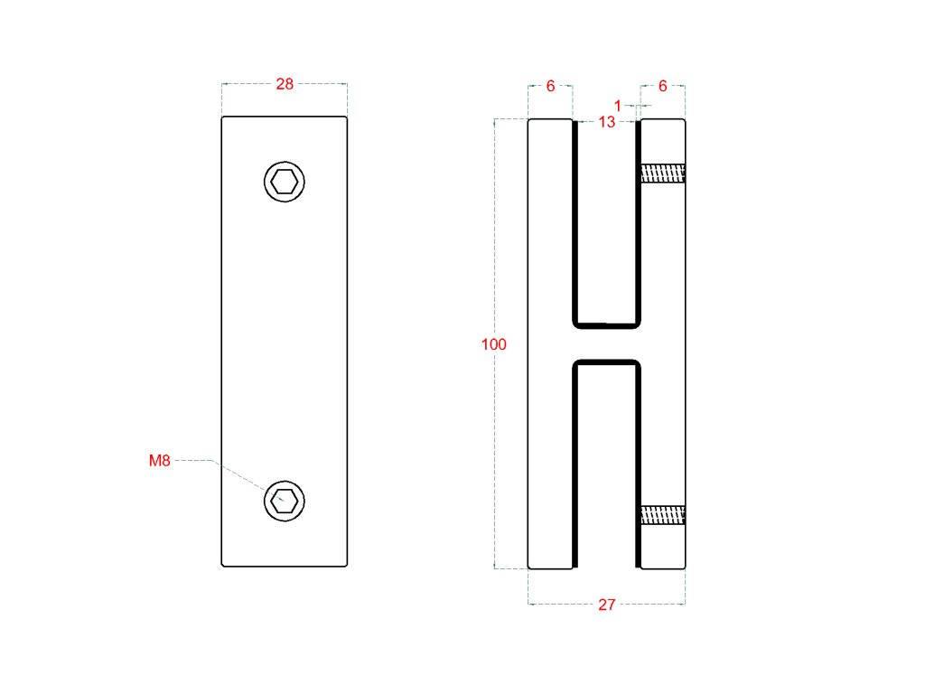 úchyt skiel (100x28x27mm), pre sklo 12mm, brúsená nerez K320 /AISI304