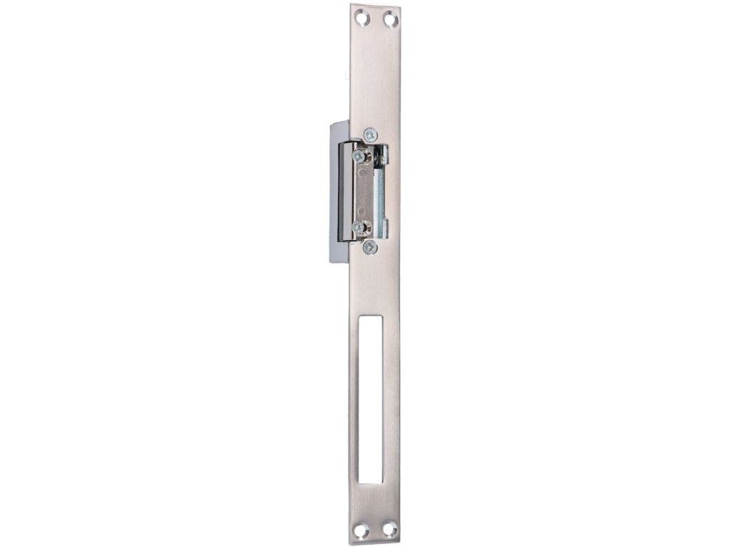 elektrozamok 12-24V, AC/DC s NEREZOVOU obojstrannou listou vhodnou na roztec zamku 90mm aj 72mm, s odblokovanim