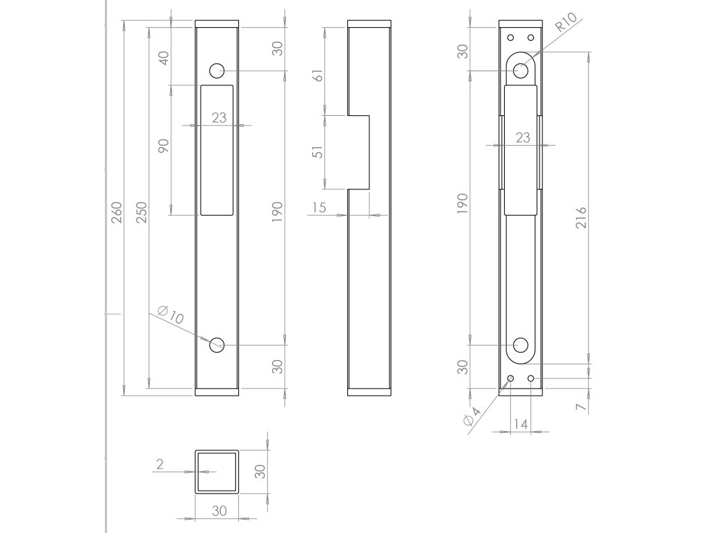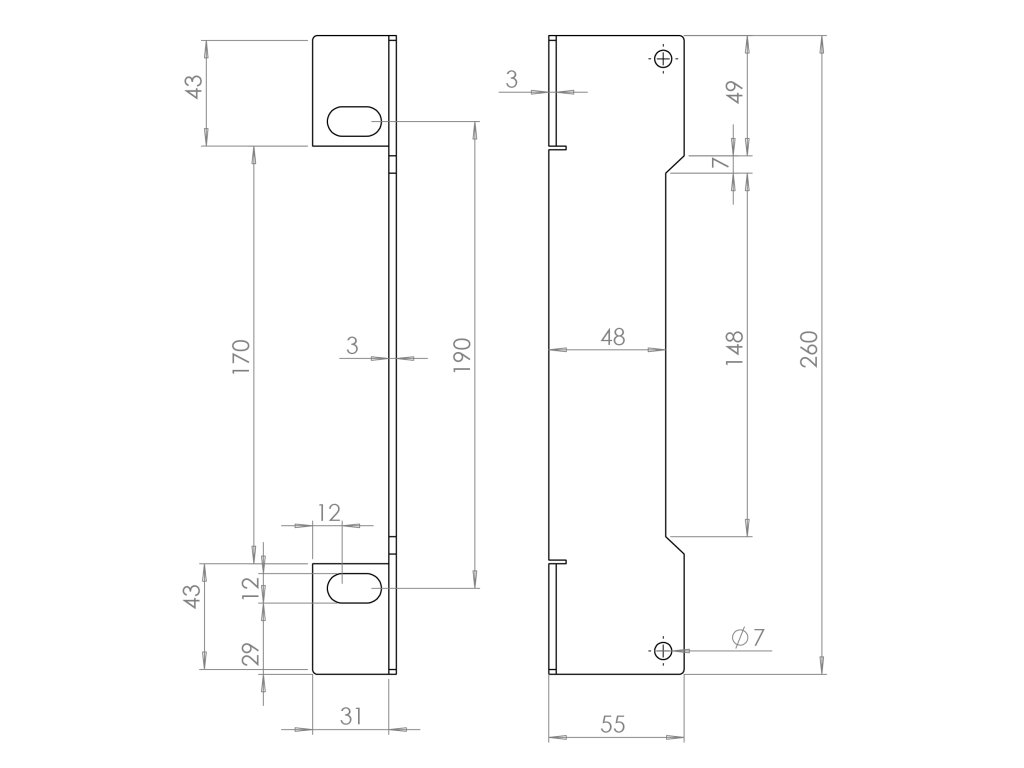Set - dorazová kazeta pravá/ľavá EZK310 (260x30x30 mm) + elektrický zámok EZ332 s lištou