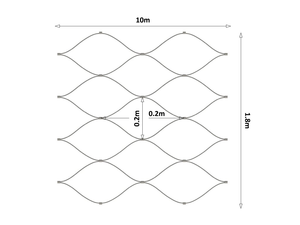 Nerezová lanková sieť, 1.8m x 10m (šxd), oko 200x200 mm, hrúbka lanka 2mm, AISI316