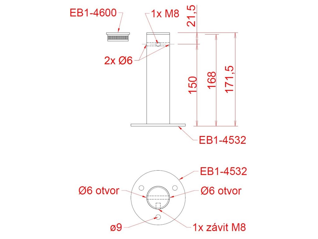 Príruba (priechodná) na fasádnu lankovú stenu, odsadenie 150mm, pre lanko max ø6mm, so závitom M8, brúsená nerez K320 / AISI 304