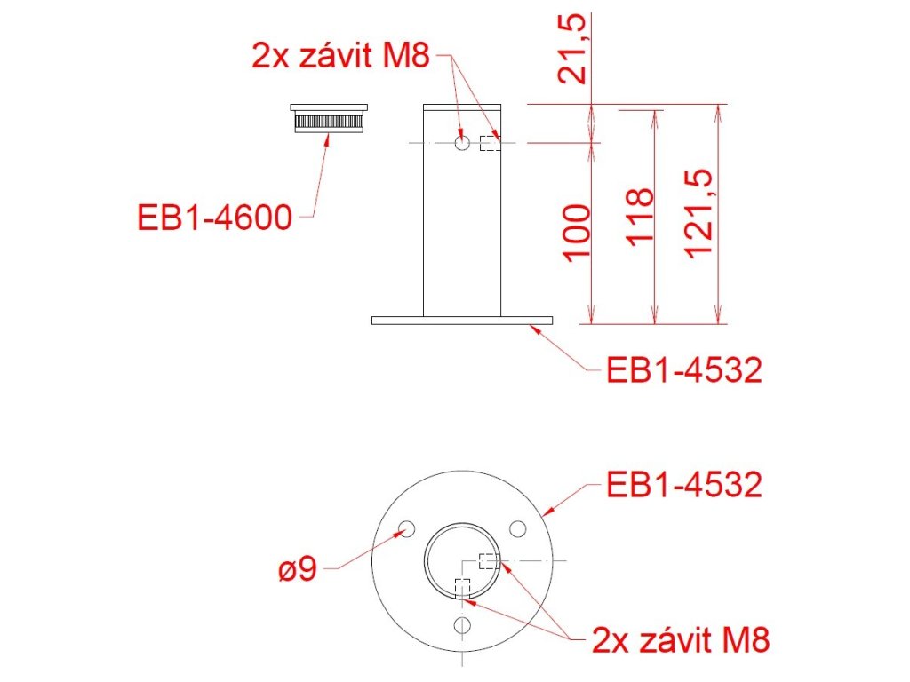 Príruba (rohová) na fasádnu lankovú stenu, odsadenie 100mm, s dvomi vnútornými závitmi M8, brúsená nerez K320 / AISI 304