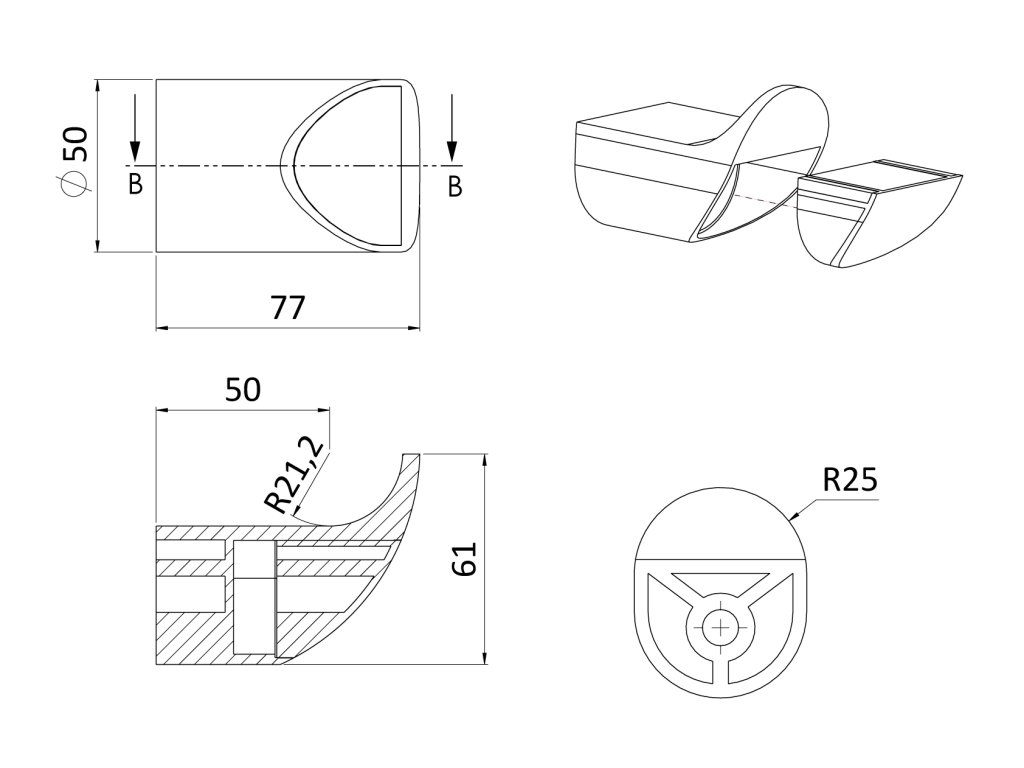 dizajnová opora francúzskeho balkóna pre trubku ø 42,4mm, brúsená nerez K320/ AISI304