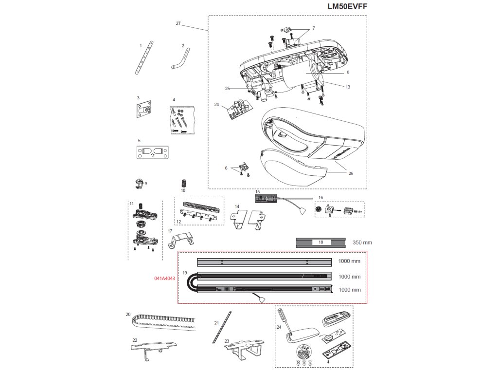 041A4043 kompletná sada koľajnice typu CR5 s príslušenstvom na montáž