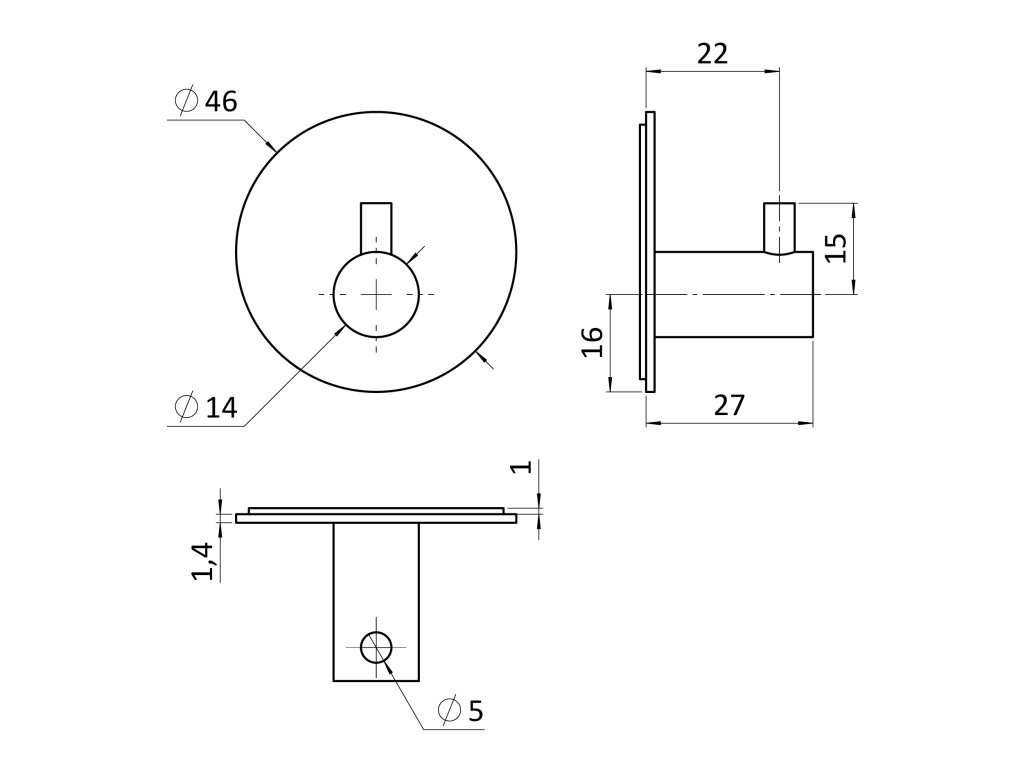 Nalepovací háčik s 3M páskov, okrúhly, základňa: 35mm, hrúbka: 3mm, brúsená nerez K320/ AISI 304