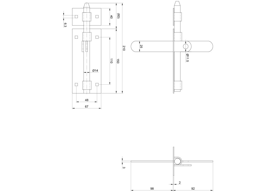 rígeľ ø 14mm, L: 210mm, pozinkovaný