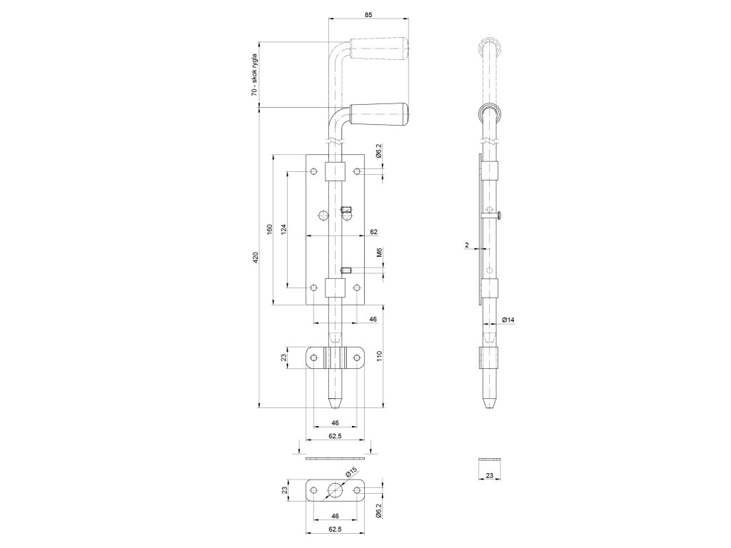 rígeľ ø 14mm, L: 420mm, povrch čierny lak