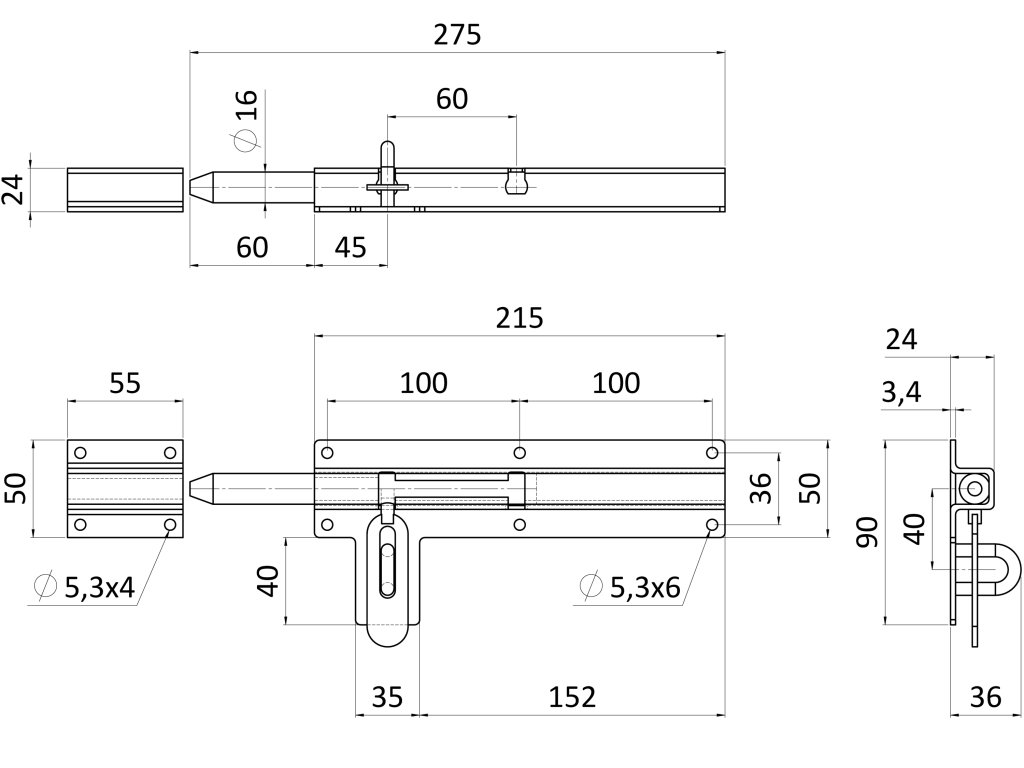 rígeľ ø 16mm, L: 215mm, pozinkovaný