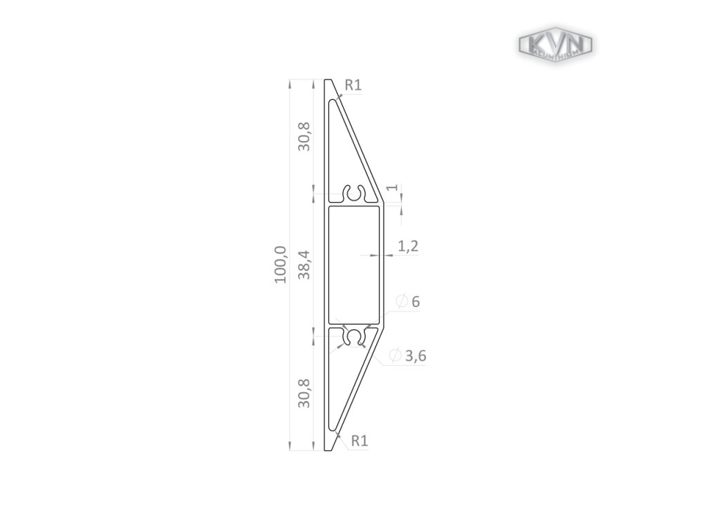 Profil 100x16mm, prírodný bez povrchovej úpravy, L-6000mm