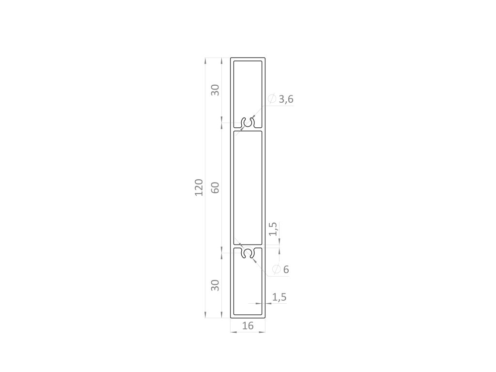 Profil 120x16mm, L-6000mm, práškový lak, štruktúra RAL7016