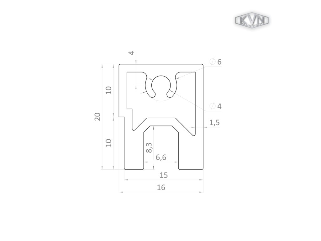 Profil 20x16mm, prírodný bez povrchovej úpravy, L-6000mm
