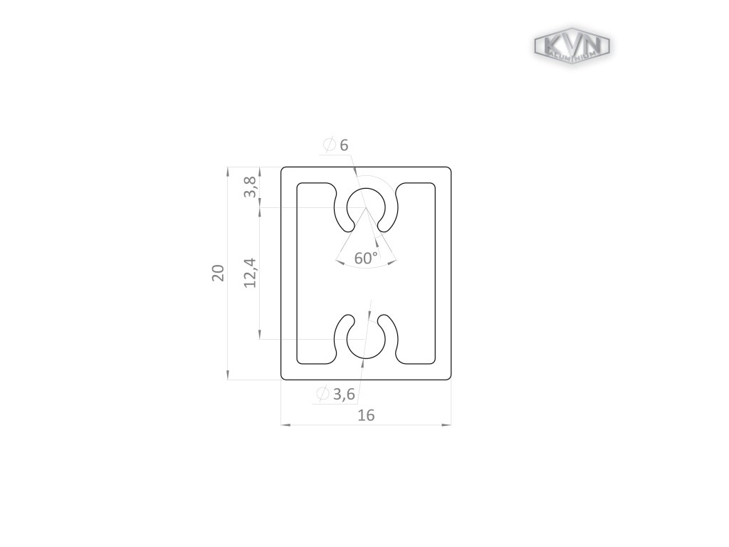 profil na výplň 20x16x6000mm, materiál EN AW-6060 T66, prírodný hliník bez povrchovej úpravy, cena za KUS