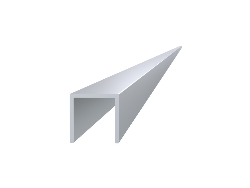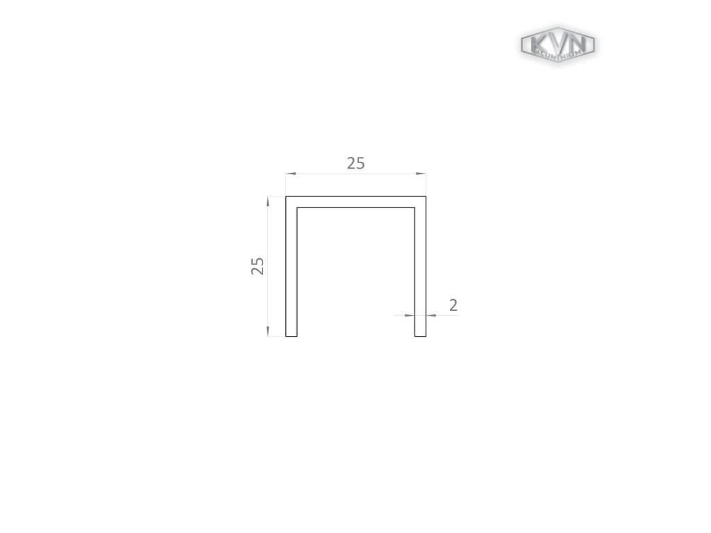 U profil 25x25mm,dĺžka 6000mm, materiál EN AW-6060 T66, prírodný hliník bez povrchovej úpravy, cena za kus
