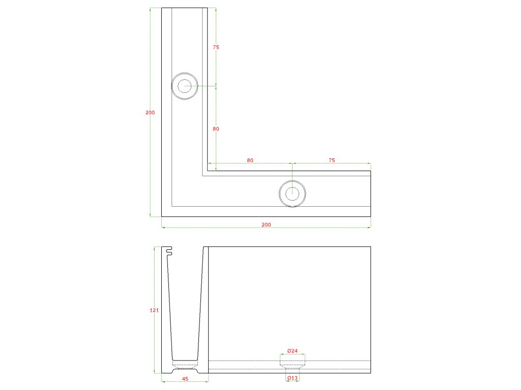 Hliníková rohová spojka so spodným kotvením pre profil AL-L121-2.5 a AL-L121-5Dodatočné parametre