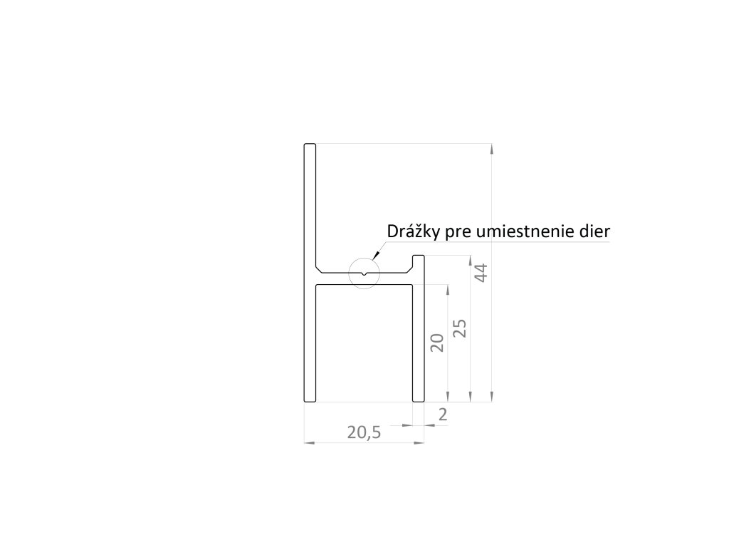 UT profil 20.5x44mm, prášková štruktúra RAL7016