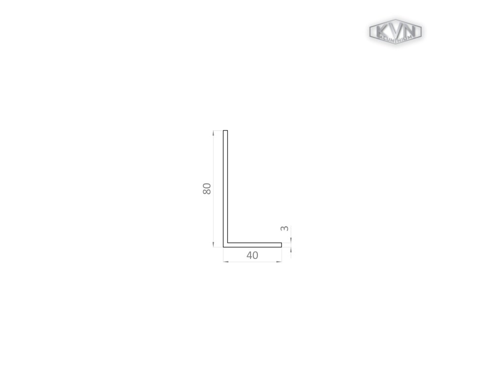 L profil 80x40x3mm,dĺžka 6000mm, materiál EN AW-6060 T66, prírodný hliník bez povrchovej úpravy, cena za kus