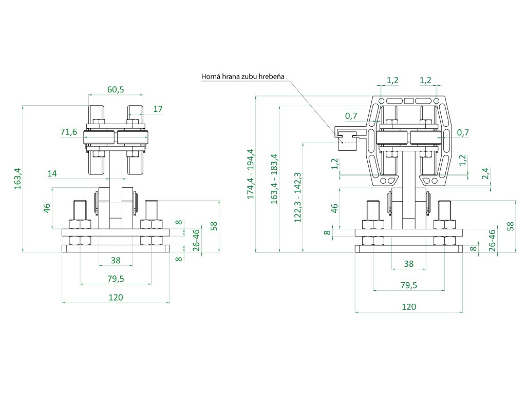 hliníkový set bez profilu pre samonosný systém (2xW38M.AL, 1xW36M.AL, 2xW32M.AL, 1xC397G)