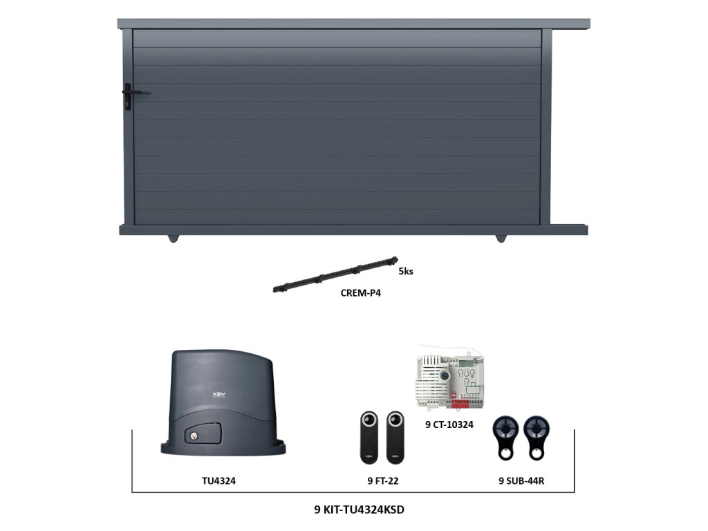 Tento konkrétny produkt ponúkame ako kompletný set vrátane pohonu 9 KIT-TU4324KSD a 5 ks ozubeného hrebeňa CREM-P4 pre automatickú prevádzku brány.