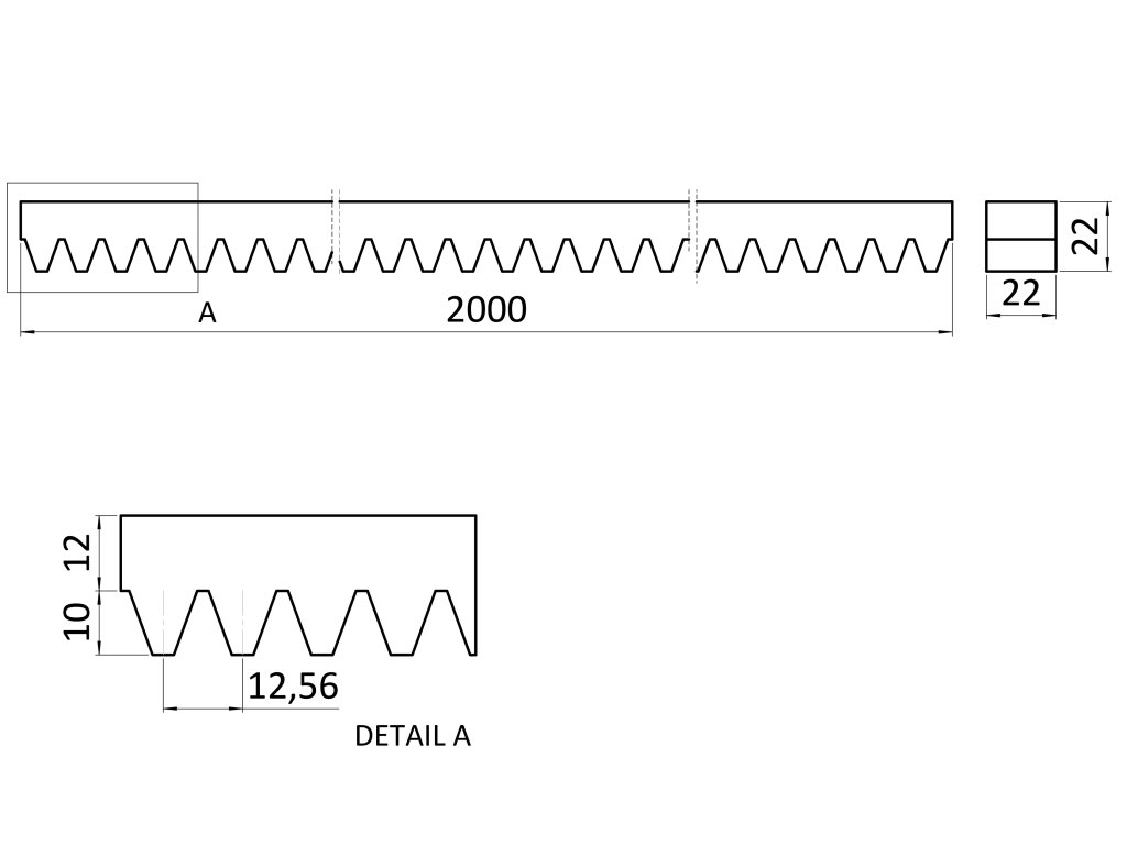 Hrebeň kov 22x22mm, L-2000mm, M4, max do 3500kg, pozinkovaný, cena za kus