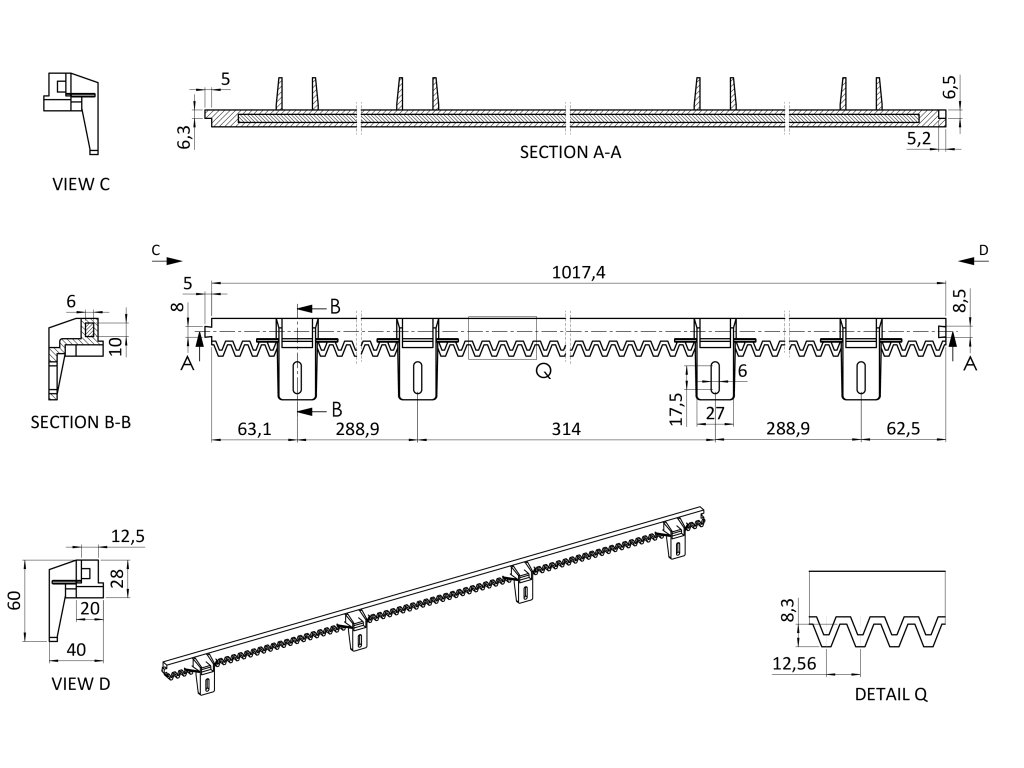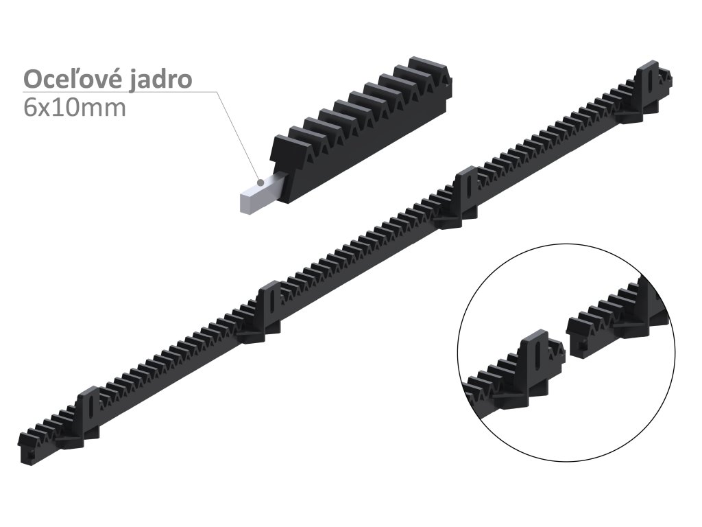 Nylonový hrebeň CREM‑P4 s oceľovým jadrom je určený pre pohony posuvných brán s maximálnou hmotnosťou do 400 kg. Vďaka kombinácii odolného nylonu a vnútornej oceľovej výstuhy zabezpečuje tichý, plynulý a spoľahlivý chod brány.