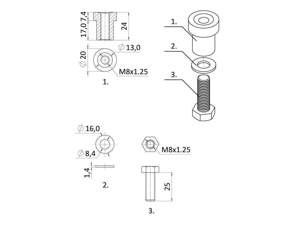 Privarovacia matica INOX so skrutkou M8x30 pre uchytenie kovového hrebeňa CREM