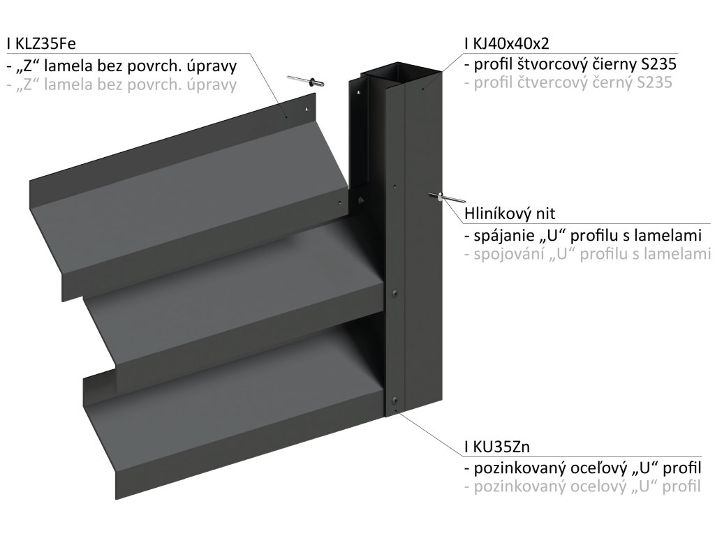 Z-profil-lamela L-2000mm 20x40x20x1,5mm, plech bez povrchovej úpravy, použitie pre plotovú výplň, možnosť použiť pre bránový špeciál KJL70x34x55x2 cena za 2m ks