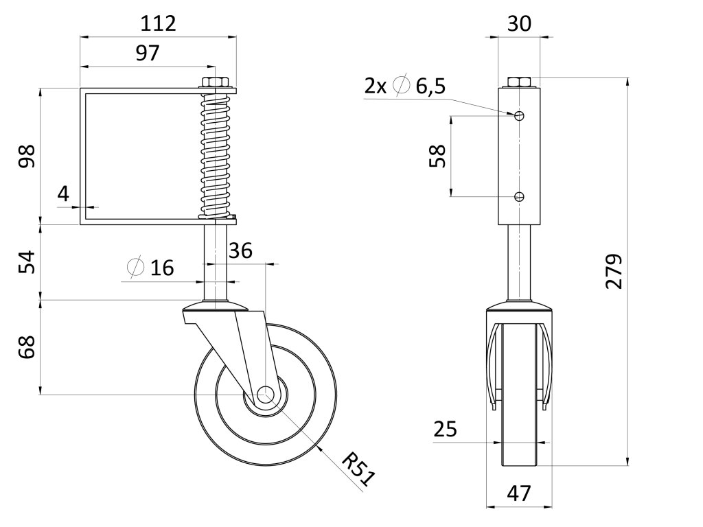 Spodné vodiace koliesko 4` pre krídlové brány, s pružinou, nosnosť 70KG, pozinkované