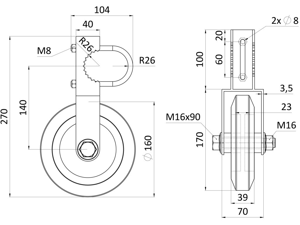 Spodné vodiace koliesko 6` pre krídlové brány, nosnosť 150KG, pozinkované