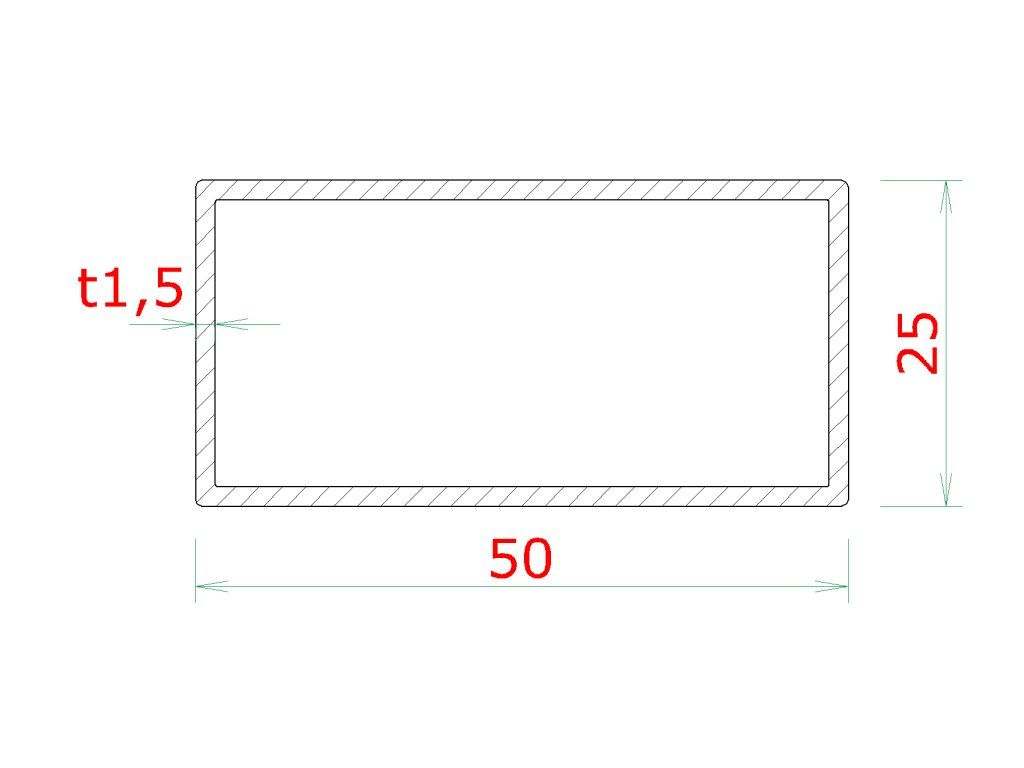 profil uzatvorený 50x25x1.5mm, cena za 1ks (6m), brúsená nerez K320 /AISI304