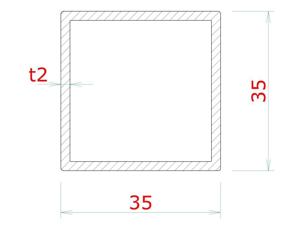 profil uzatvorený 35x35x2mm, brúsená nerez K320 /AISI304