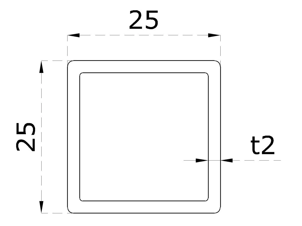 profil uz profil uzatvorený 25x25x2mm, brúsená nerez K320/AISI304 avřený 25x25x2mm, broušená nerez K320/AISI304Dodatočné parametre