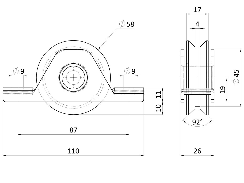 Kladka ø 58mm pre zapustenie do jokla, pre profil C906IXV, nosnosť (celej brány) 300kg, nerez /AISI304